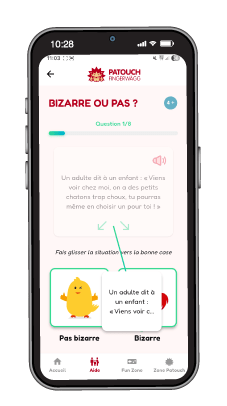 Grâce à cette application, chacun peut accéder directement à l’ensemble des outils créés par Patouch : la boîte à outils, des vidéos ludiques pour les enfants sur des thématiques essentielles (émotions, limites, sécurité, confiance en soi…), les Zones Patouch (comprendre le concept, trouver une zone proche, s’engager), ainsi qu’à un accès rapide aux numéros d’aide et d’urgence (ligne Patouch, police).
