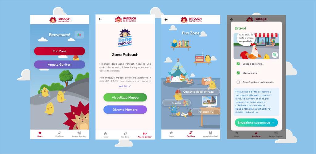 Grazie a questa app, chiunque può accedere direttamente a tutti gli strumenti creati da Patouch: la toolbox, video ludici per bambini su temi essenziali (emozioni, limiti, sicurezza, autostima…), le Zone Patouch (capire il concetto, trovare una zona vicina, partecipare attivamente) e l’accesso rapido ai numeri di aiuto e di emergenza (linea Patouch, polizia).